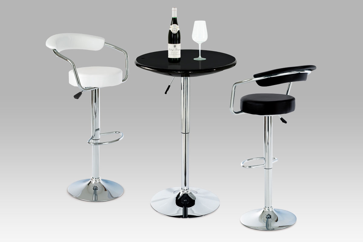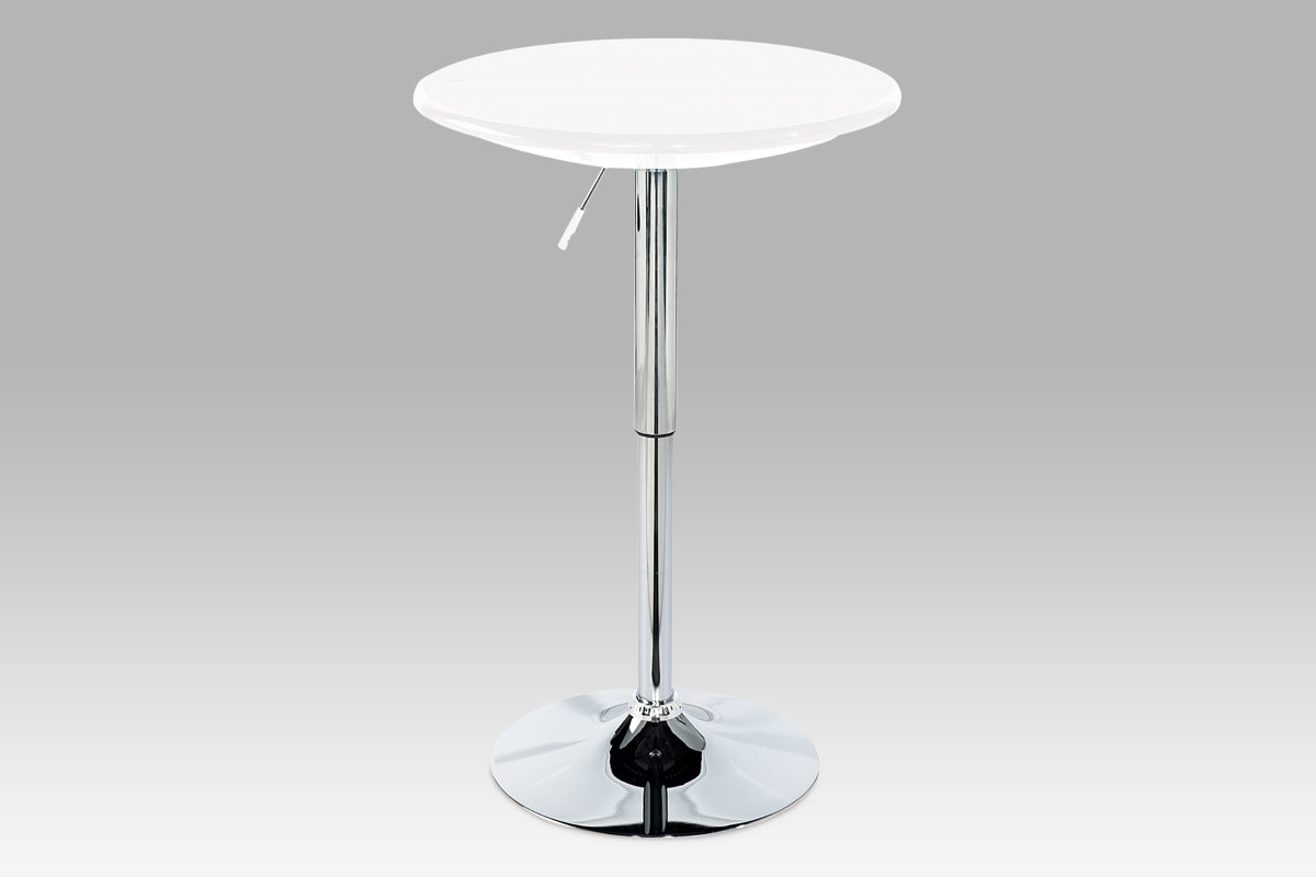 Barový stôl AUB-5010 je moderný barový stôl. Vyrába sa v kombinácií chrómu a bielej alebo čiernej farby. Barový stôl je výškovo nastaviteľný.