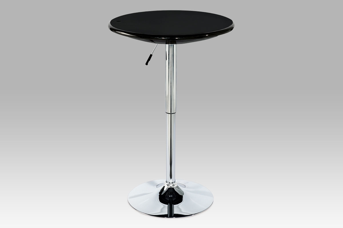Barový stôl AUB-5010 je moderný barový stôl. Stôl má jednoduchý dizajn. Je výškovo nastaviteľný. Barový stôl sa vyrába v kombinácií chrómu a čiernej alebo bielej farby. Plát stola je lesklý. Stôl je vhodný do kuchyne či baru, alebo reštaurácií.
