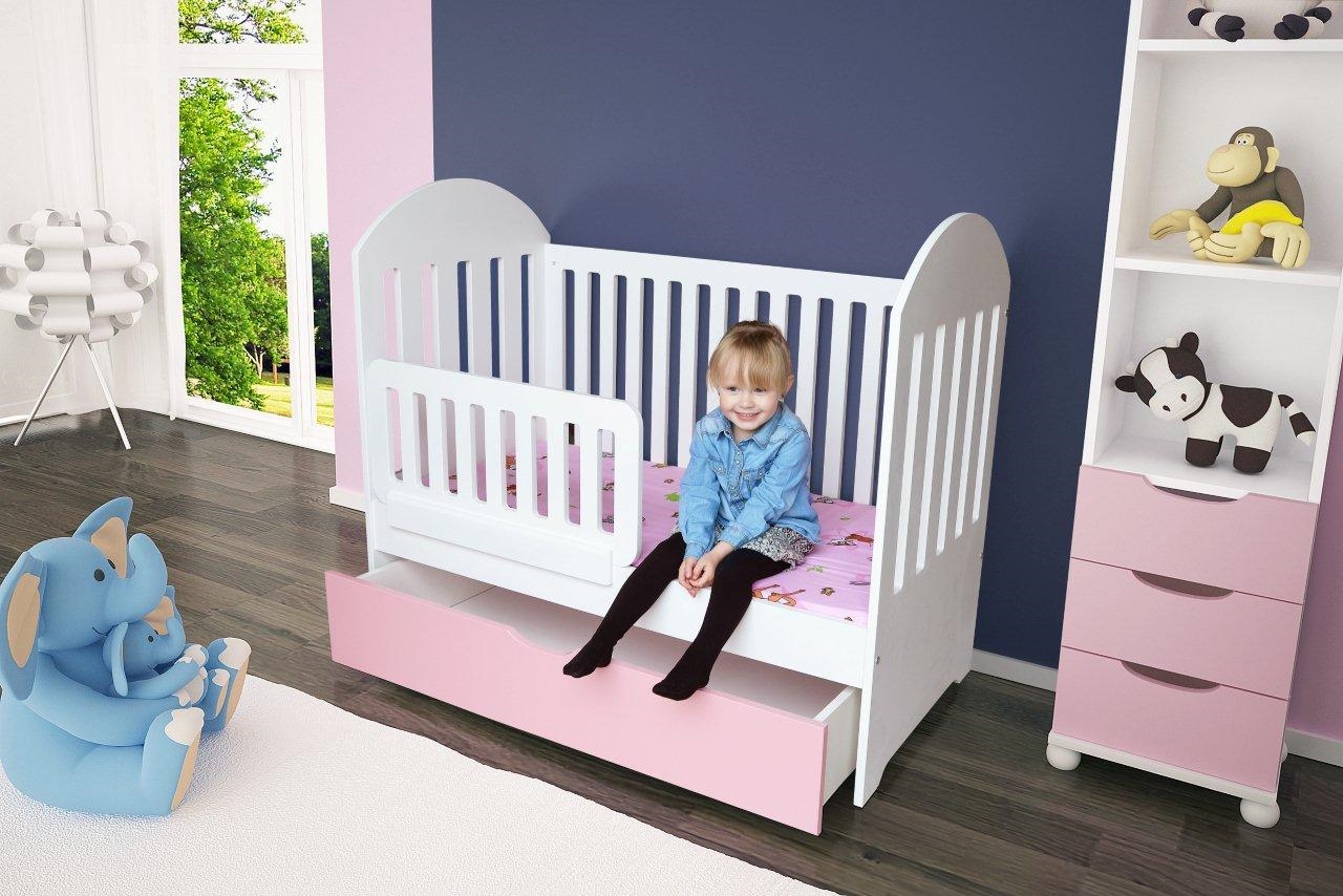 Súčasťou postielky sú 2 rôzne zábrany, ktoré môžte meniť podľa veku dieťaťa. Postieľka má aj praktický úložný priestor v spodnej časti.