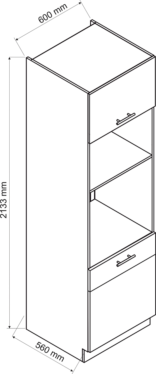 Skriňa na vstavanú rúru a mikrovlnku D60 PK MV/213 je súčasťou sektorovej kuchynskej linky ELENA II. Skriňa je vyrábaná v modernej a elegantnej kombinácii dubu artisan a matnej čiernej. Disponuje taktiež systémom tichého uzatvárania dvierok.