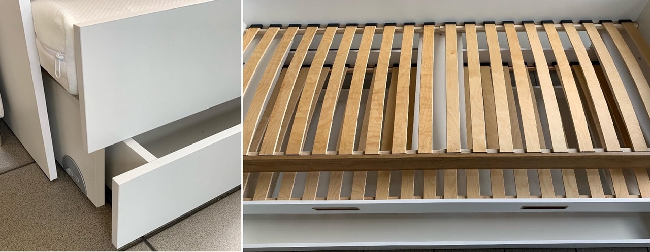s roštami, bez matracov. Možnosť doobjednať matrace