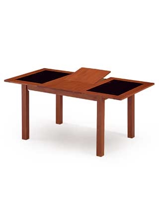 Rozkladací jedálenský stôl z masívu AUT-557 TR2 vo farebnom prevedení čerešňa v kombinácii s čiernym sklom.