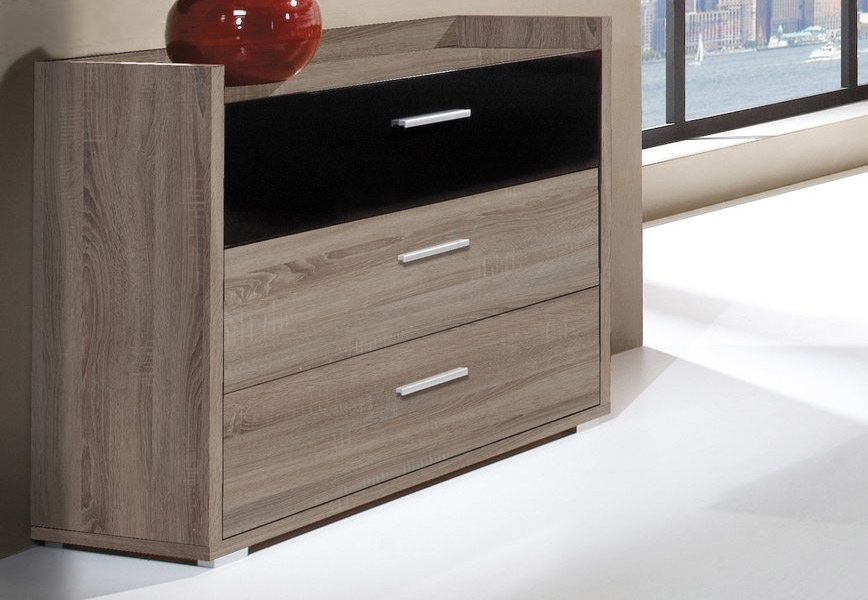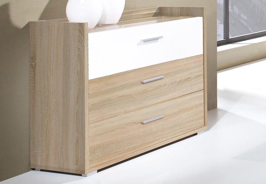 3-zásuvková komoda Margo dodávaná v 2 farebných prevedeniach.