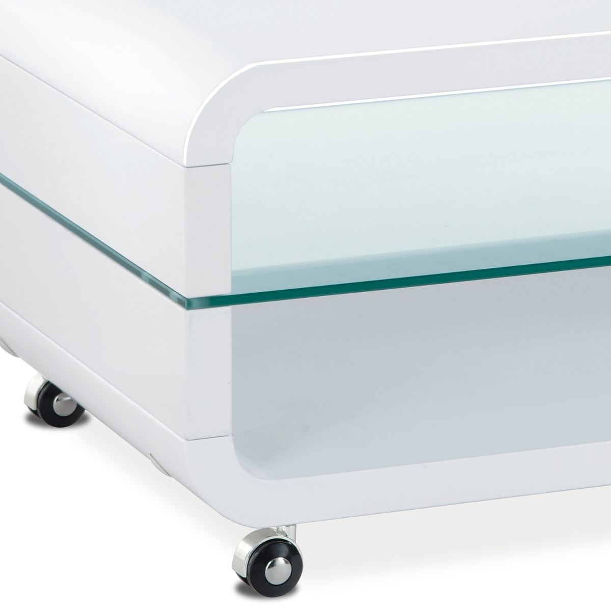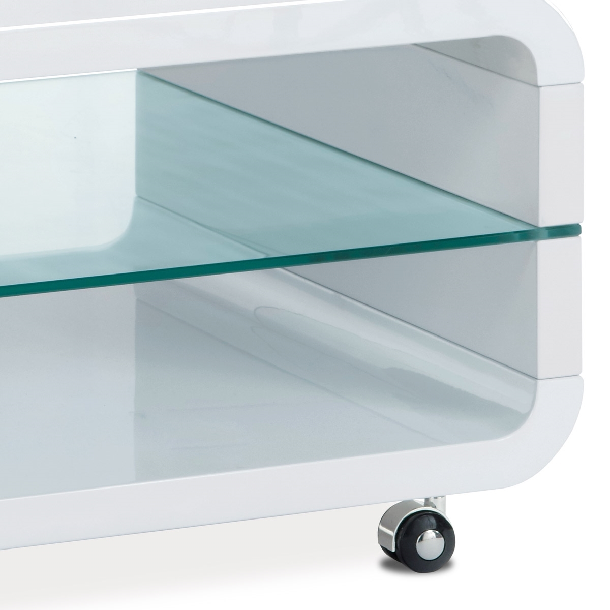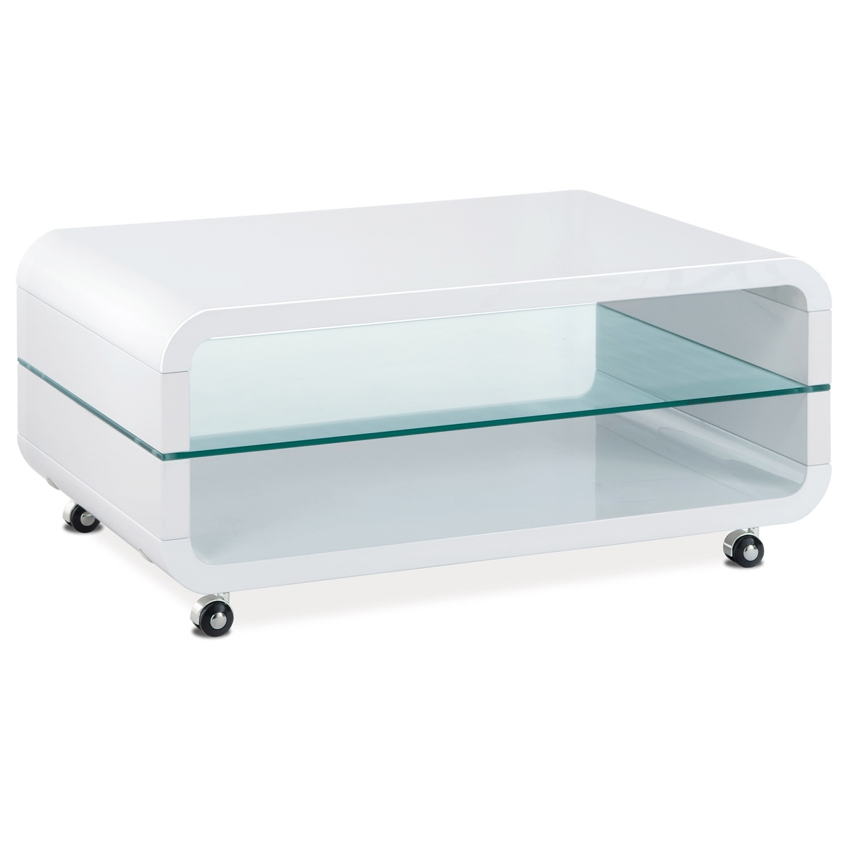 Konferenčný stolík AHG-611 WT je moderný konferenčný stolík. Má praktickú policu z číreho skla. Zaujme Vás dizajnom. Konferenčný stolík je na kolieskach. Stolík je dostupný v bielom vysokom lesku.
