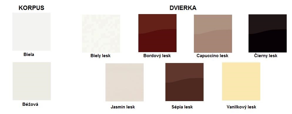 - dvierka - MDF fólia, ABS hrany hr. 2 mm