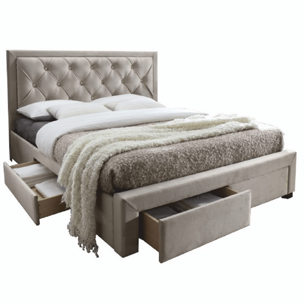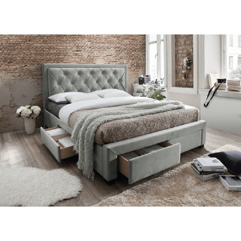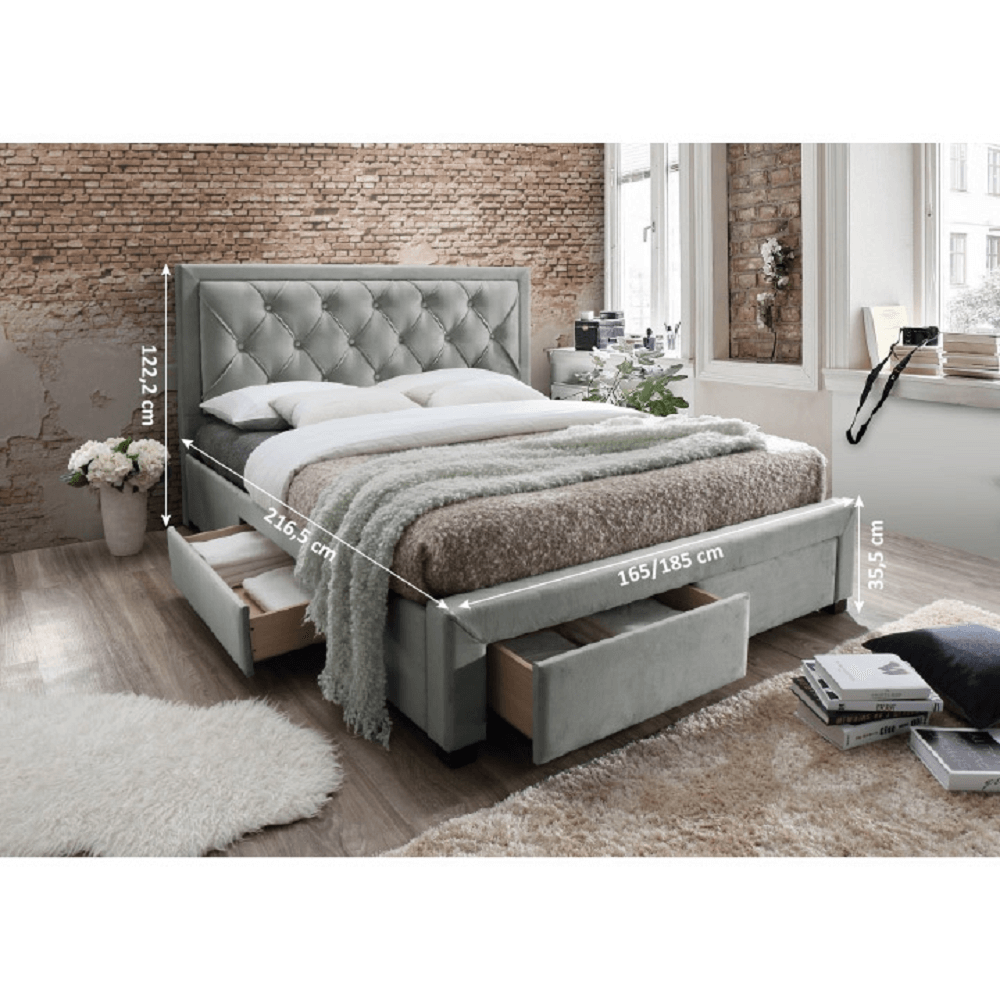 Luxusná manželská posteľ OREA so zásuvkami. Čalúnená kvalitnou sivohnedou látkou. Dostupná v dvoch veľkostiach.