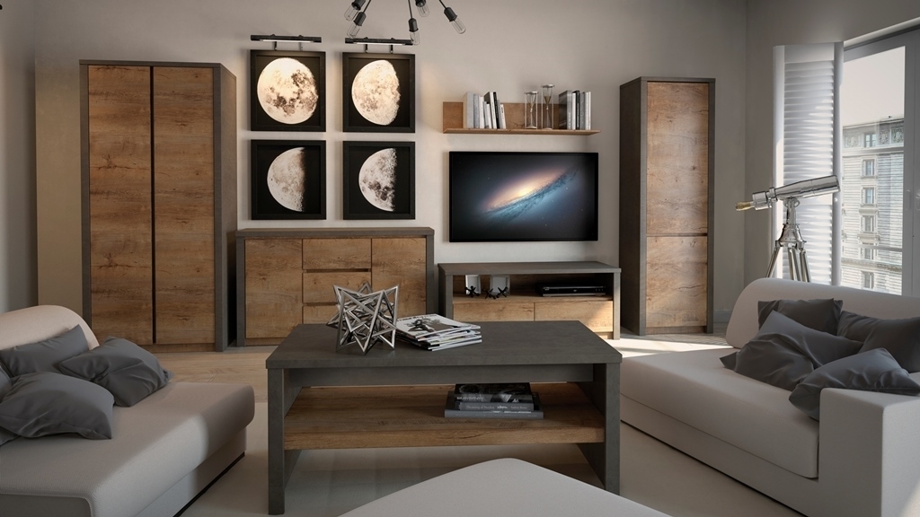 Priemyselný štýl a rustikálne drevené tóny robia z tohto systému očarujúci nábytok. Systém pozostáva z viacerých samostatných prvkov. Vašu obývačku, spálňu alebo kanceláriu si takto viete vytvoriť podľa Vašich predstáv a priestorových možností.