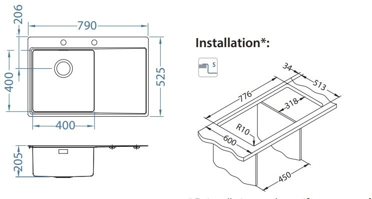 Kvalitný moderný nerezový kuchynský drez s extra hlbokou vaničkou a odkvapkávacou plochou na čistý riad a príbory. Súčasťou drezu je komplet 3,5" ventil so sitkom a sifón pop-up s excentrickým otváraním a s odbočkou na umývačku riadu. Drez sa inštaluje do pracovnej dosky tak, aby tvorili jednotnú pracovnú plochu. Tenké, skoro neviditeľné okraje poskytujú rýchle a jednoduché čistenie. Má taktiež predpripravený otvor na batériu. Môžete si taktiež zvoliť ľavé alebo pravé prevedenie. Dizajn drezu je minimalistický, inšpirovaný najnovšími trendmi a to nielen po praktickej, ale aj po estetickej stránke. Drez totiž disponuje tenkým lemom a esteticky krytým prepadom. Minimálna šírka skrinky pre osadenie drezu je 40 cm.
