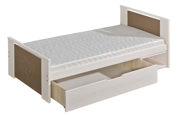 Jednoduchá posteľ z masívu s bočnými čelami vhodná pre deti i mládež. Vďaka príjemnému drevenému materiálu si svoje uplatnenie nájde aj na chatách, chalupách či ubytovniach. Praktickú stránku postele rozširuje úložný priestor a výsuvny nočný stolík.
