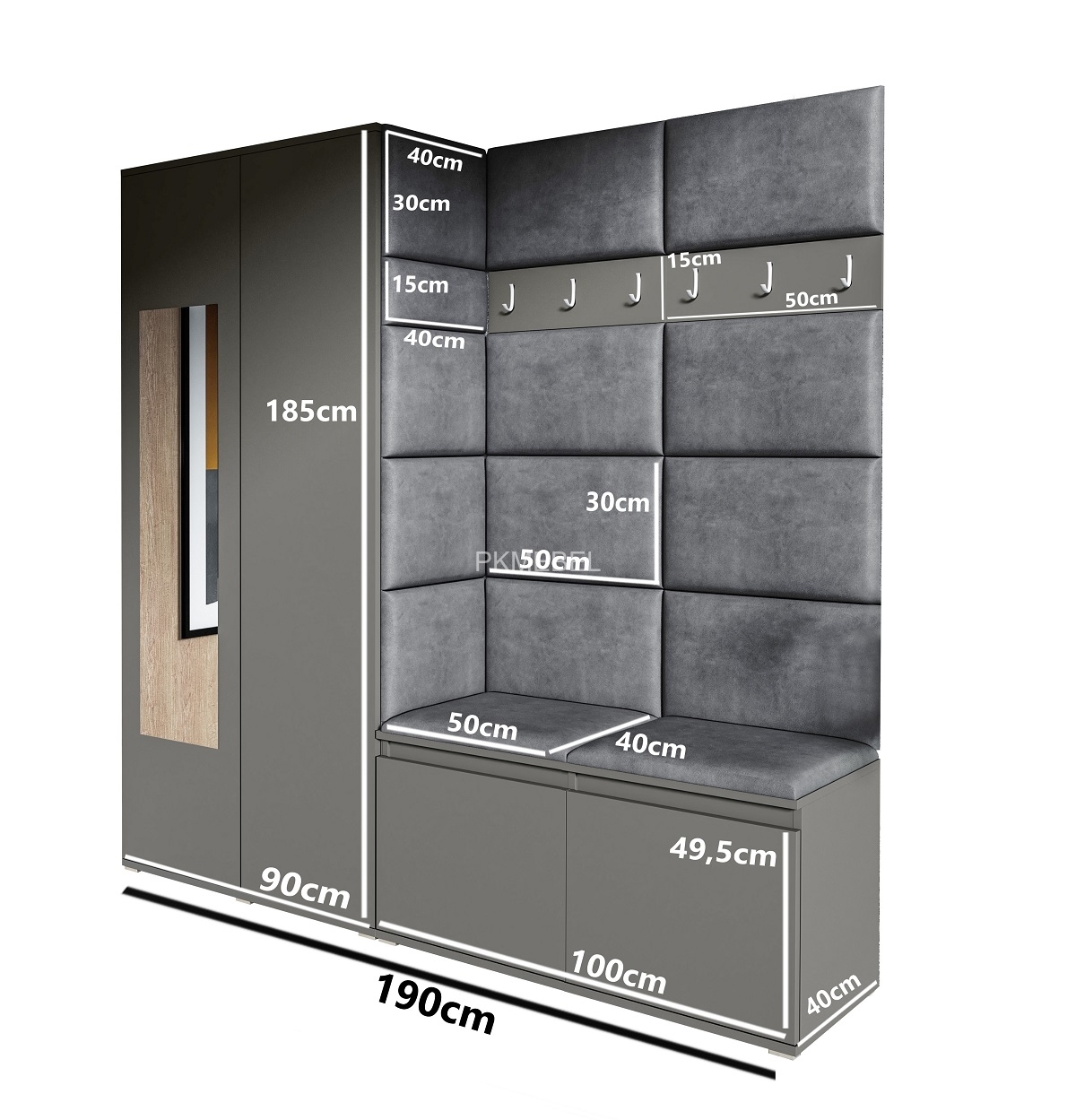 - 1 čalúnený panel o rozmere 40x15x3 cm