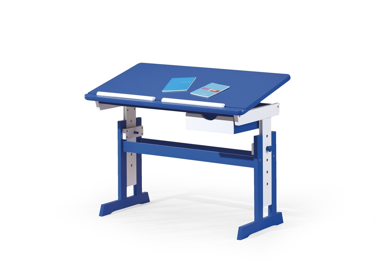Do kategórie moderných a rafinovyných pracovných stolíkov pre deti a mládež patrí výškovo nastaviteľný stolík s vyklápacou doskou. Moderný dizajn a premyslený mechanizmus nastavenia rozmerov vyhovie potrebám dieťaťa od útleho detstva až po tínedžerský vek. Praktickým doplnkom je malá zásuvka určená napríklad na písacie potreby. Stolík Paco svojou modro-bielou farebnou kombináciou sa hodí najmä do chlapčenskej izby.
