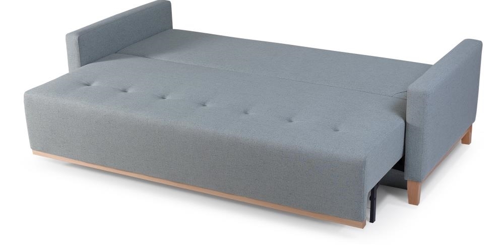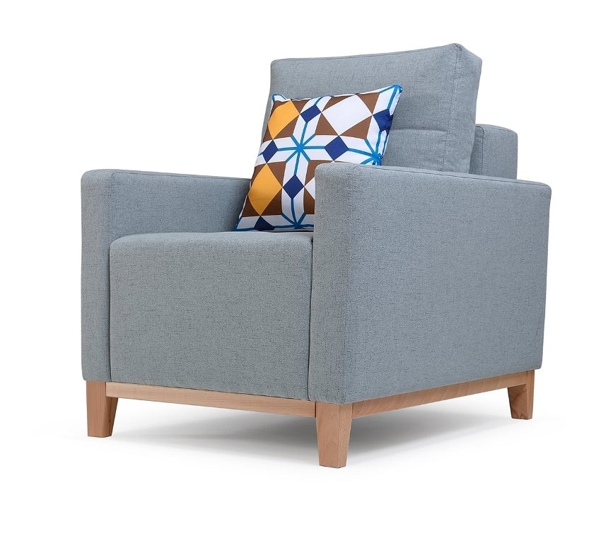 Sedacia súprava pozostávajúca z rozkladacej pohovky s podrúčkami a pevným vankúšový operadlom a kresiel. Má moderný dizajn doplnený drevenými nožičkami a doplnkami. Pohova má aj úložný priestor. Poťahovú látku si môžete vybrať z našej širokej ponuky poťahových látok.