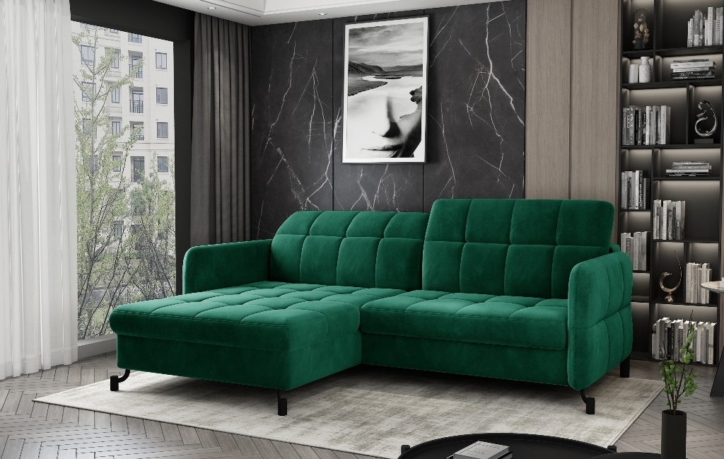 Krásna, moderná sedacia súprava Lorelle Vás zaujme svojími dizajnom. Sedacia súprava s prešitím pôsobí veľmi elegantne a bude určite ozdobou Vašej obývacej izby. Atypické nožičky dodávajú celkovému vzhľadu sedacej súpravy punc výnimočnosti. Moderná rohová rozkladacia sedacia súprava s úložným priestorom a polohovateľnými opierkami hlavy. Vysoké podrúčky poskytujú ideálne pohodlie pre Vaše ruky.