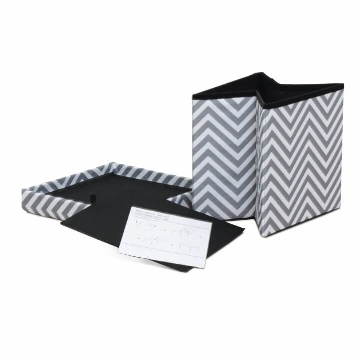 Praktická moderná skladacia taburetka s úložným priestorom. Taburetka čalúnená vzorovanou poťahovou látkou.