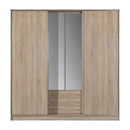 4-dverová kombinovaná skriňa Greta so zrkadlom, posuvnými dverami a 3 zásuvkami. Skriňa Greta Vám poskytne množstvo odkladacieho priestoru na zavesenie aj zloženie do políc. V spodnej časti nájdete 3 priestranné zásuvky.