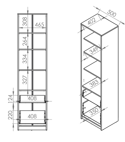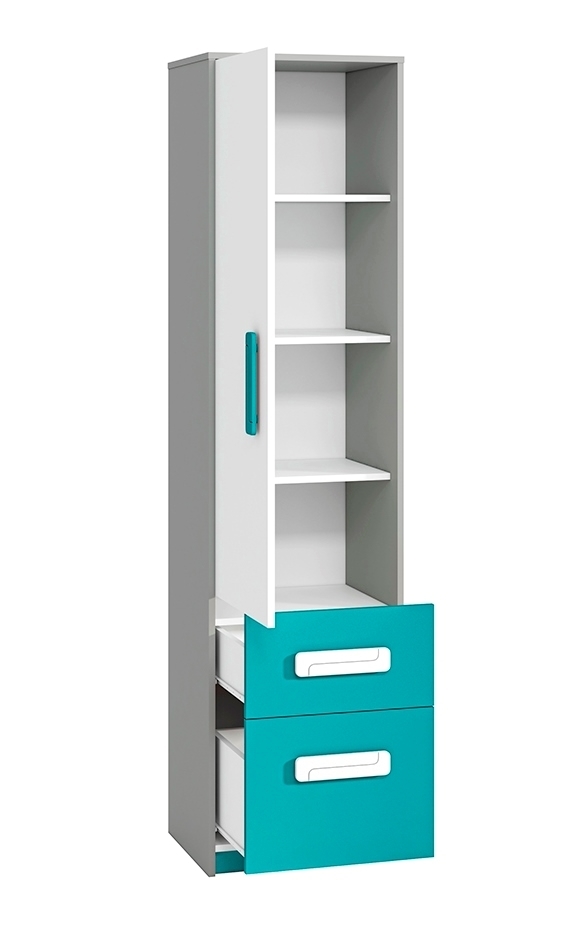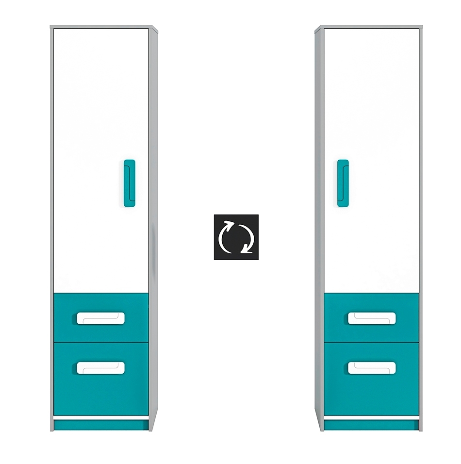 1-dverová policová skriňa zo sektorového systému IQ. Skriňa má 4 police umiestnené za dvierkami a 2 zásuvky. Skriňa IQ 05 má univerzálne dvierka, viete si ich namontovať na pravú alebo ľavú stranu, podľa Vašej potreby.