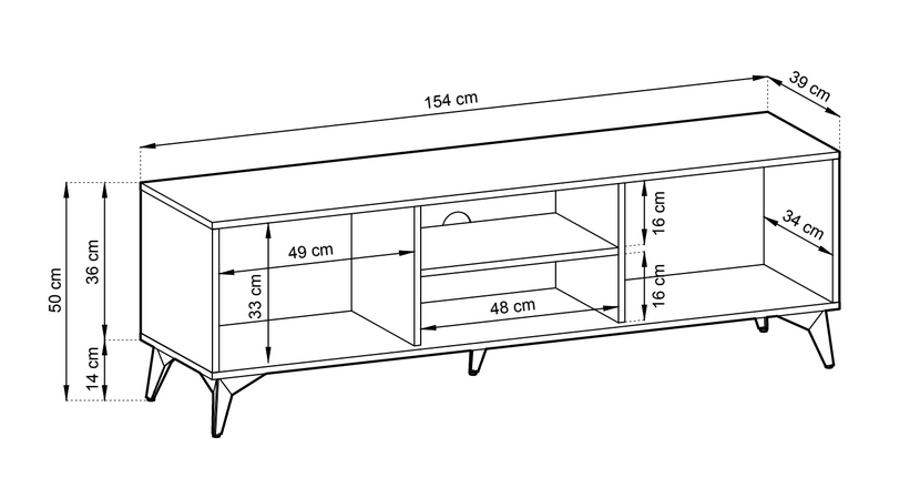 RTV skrinka DIAMOND Vám poskytne úložný priestor v podobe 2 skriniek a 2 otvorených políc s výrezom na káble.