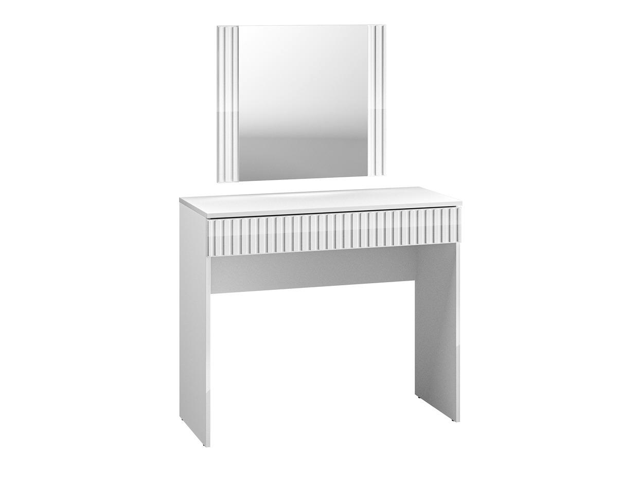 Tento elegantný toaletný stolík je dokonalým doplnkom do modernej spálne alebo šatne či študentskej izby. Jeho minimalistický dizajn v bielej farbe prináša do interiéru luxusný a sofistikovaný vzhľad. Stolík obsahuje praktickú širokú zásuvku, ktorá poskytuje dostatok úložného priestoru na kozmetiku, šperky a ďalšie doplnky. Zrkadlo s rovnakým dizajnovým rámom dodáva stolíku harmonický vzhľad a zároveň umožňuje pohodlné líčenie či úpravu vlasov. Tento toaletný stolík je ideálnou voľbou pre každého, kto hľadá funkčný, no zároveň štýlový kúsok nábytku, ktorý dodá priestoru nádych luxusu a praktickosti.
