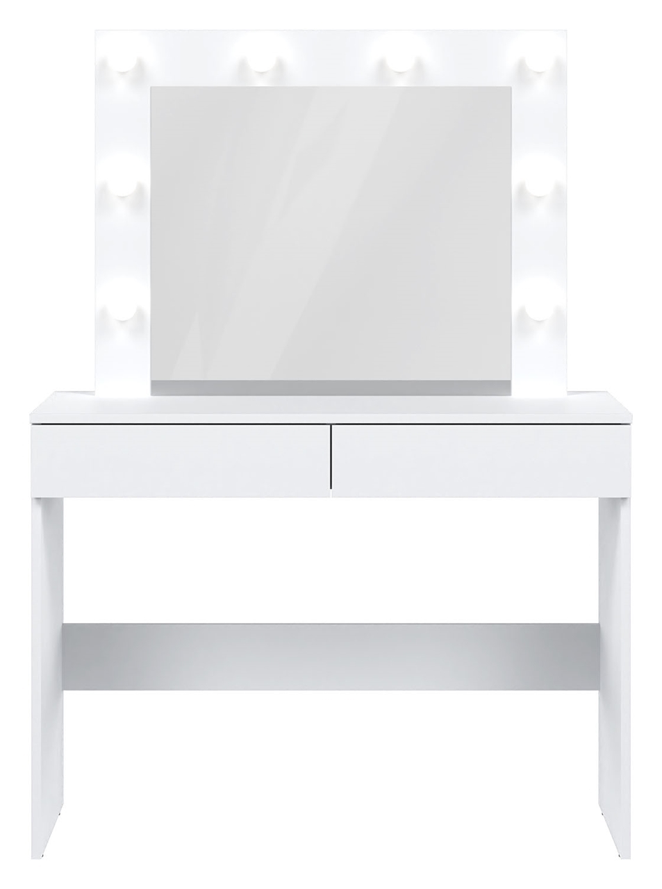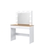 Toaletný stolík REMI RM16 so zrkadlom a LED osvetlením najviac očarí ženské pohlavie. Jeho dizajn je inšpirovaný hollywoodskym štýlom. Súčasťou stolíka sú šuflíky a LED osvetlenie pre lepšie svetlo pri skrašľovaní. Tento elegantný toaletný stolík je dokonalým doplnkom do modernej spálne alebo šatne. Jeho minimalistický dizajn v bielej farbe prináša do interiéru luxusný a sofistikovaný vzhľad. Stolík obsahuje dve praktické zásuvky, ktoré poskytnú dostatok úložného priestoru na kozmetiku, šperky a ďalšie doplnky. Zrkadlo s jednoduchým rámom dodáva stolíku harmonický vzhľad a zároveň umožňuje pohodlné líčenie či úpravu vlasov. Navyše si môžete zvlič jeho postavenie na stolík alebo zavesenie na stenu. Tento toaletný stolík je ideálnou voľbou pre každého, kto hľadá funkčný, no zároveň štýlový kúsok nábytku, ktorý dodá priestoru nádych luxusu a praktickosti. Môžete si vybrať z 2 farebných prevedení.