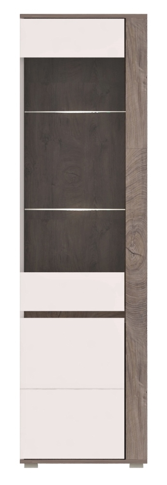 Vitrína ARES AS9 je kvalitná praktická vitrína, ktorá je súčasťou moderného sektorového systému ARES. Vitrína Vám poskytne nielen praktický úložný priestor, ale aj skrášli interiér. Vitrína je rozdelená na dve časti - spodnú uzavretú a vrchnú presklennú časť. Vďaka tomuto rôznorodému priestoru budete mať dostatok úložného priestoru na úschovu potrebných vecí, cenností ale aj dosť priestoru na umiestnenie dekorácií. Jednotlivé kusy nábytku majú jednoduchý dizajn, ktorý je charakteristický najnovšími trendmi a sú navrhnuté tak, aby si zachovali svoju funkčnosť. Komoda taktiež dispouje systémom tichého uzatvárania dvierok. Tieto ich vlastnosti sú podčiarknuté elegantnou bielou v lesku v kombinácii s dubom enferein.