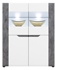 Moderná vitrína BRANDO B4 má v hornej časti 2 presklenné dvierka, za ktorými sú sklenené police. V spodnej časti sú 2 plné dvierka, za ktorými sú 2 priečinky.