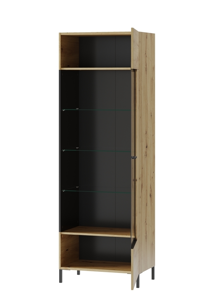 Táto moderná a kvalitná 1-dverová policová vitrína zo sektorového systému Lucas je vhodná do obývacích izieb. Vitrína Vám prinesie potešenie do Vášho domova vďaka množstvu úložného priestoru a dokonalej kombinácií dubu artisan a čierneho matu. Sektor LUCAS sa skladá z 12 samostatných prvkov, ktoré nájdete nižšie.